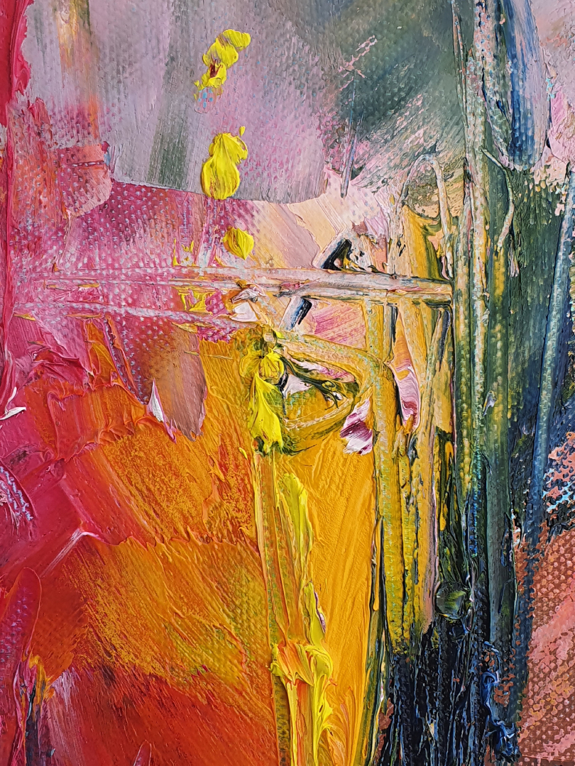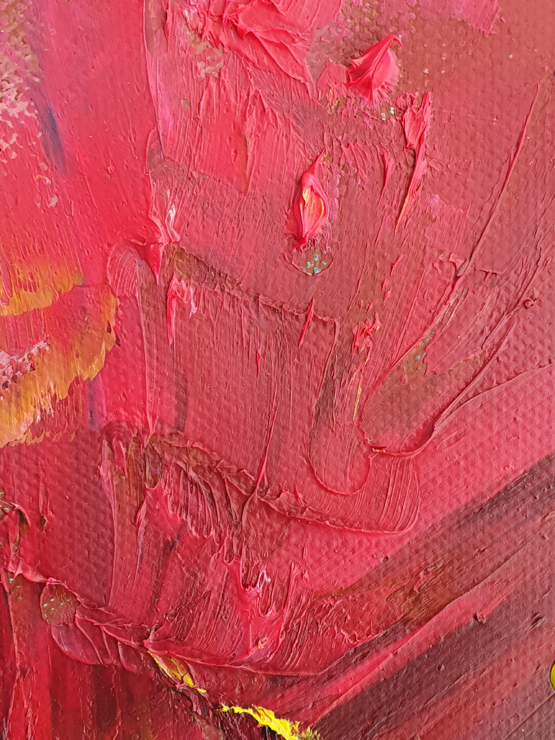 Devi is a Hindu mother goddess, supreme power in the universe, wife or embodiment of the female energy of Shiva having both beneficent and malevolent forms or aspects. Devi is a living entity, very much physical. She has many forms like Durga, Kali, Laxmi, but in my painting it is represented as Linga Bhairavi Devi, Sadhguru’s consecrated form.