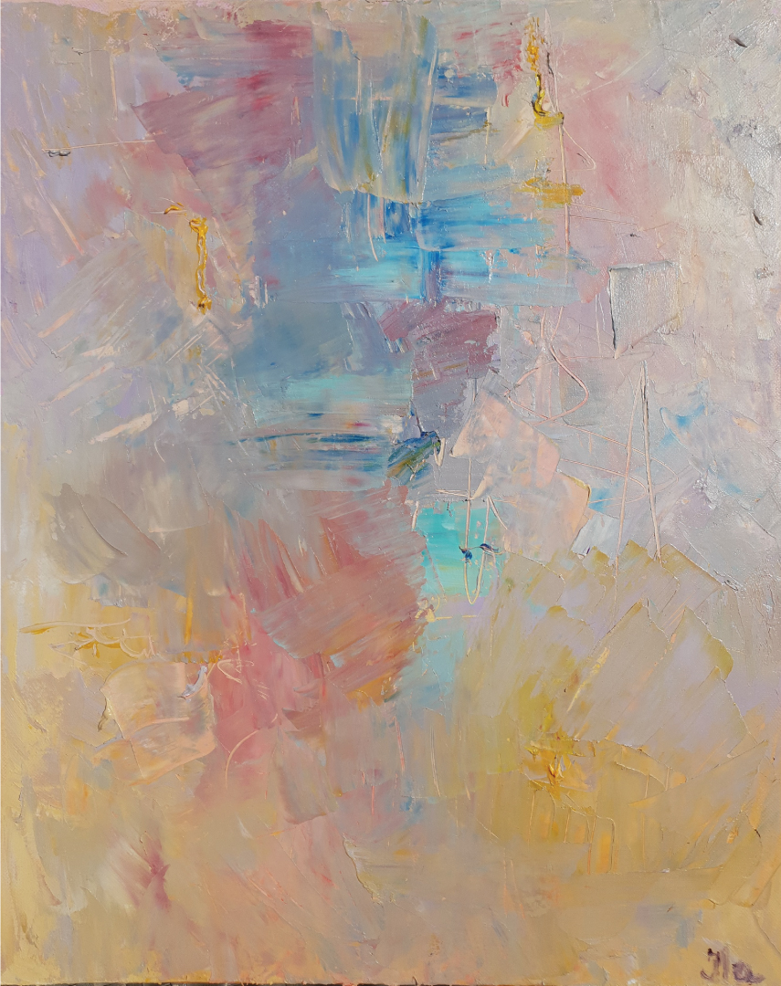 With this artwork I wanted to translate on canvas the concept of mindfulness which basically means maintaining a moment-by-moment awareness of our thoughts, feelings, bodily sensations, and surrounding environment, through a gentle, nurturing lens.